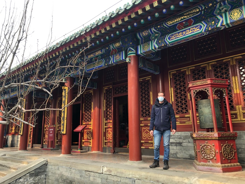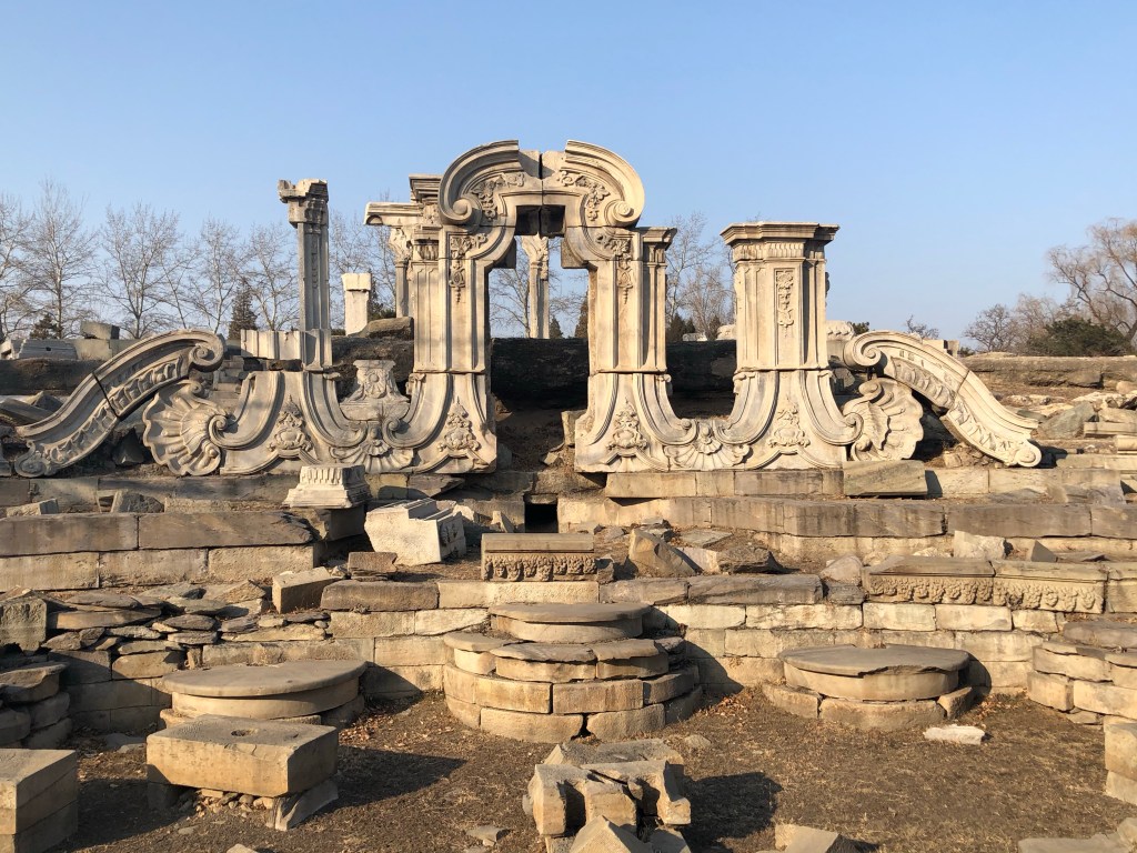 We managed to find some temples that were open to the public, though very few people were visiting them. A few times I removed my mask until I noticed the locals were shooting scornful glances in my direction. We explored the ruins of an imperial garden called Yuanmingyuan. These ruins had been torched by Anglo-French expeditions, as well as American and British military campaigns in the 20th century. Though it is difficult to find information of the site in the park; all of the plaques simply list the architectural dimensions, nothing about the history. The site now holds patriotic pageants that depict foreign barbarians running from the powerful Chinese dynasty. The Western-style palaces echo remnants of Western expansion in the East.